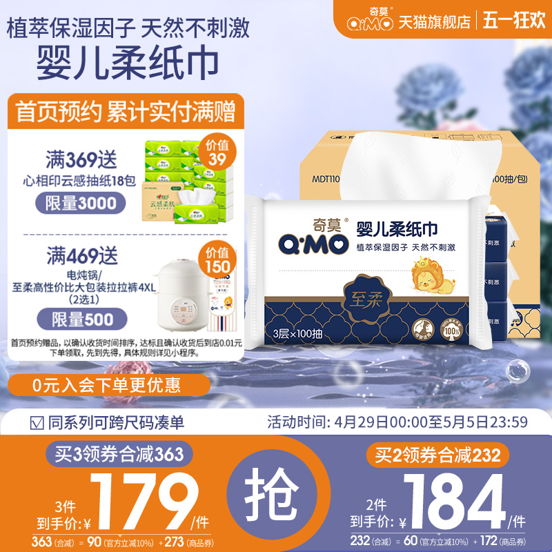 奇莫至柔嬰兒柔紙巾寶寶專用紙100抽整箱48包柔軟嬰兒用抽紙絲滑