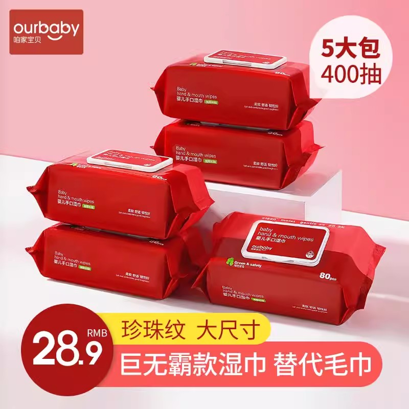 咱家寶貝嬰兒濕巾紙新生兒手口專用巨大巨厚寶寶家庭用實惠濕紙巾