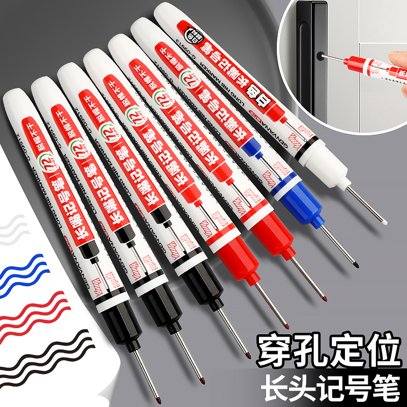 長頭記號筆深孔防水不掉色不可加墨衛浴木工裝修多用途三色標記筆