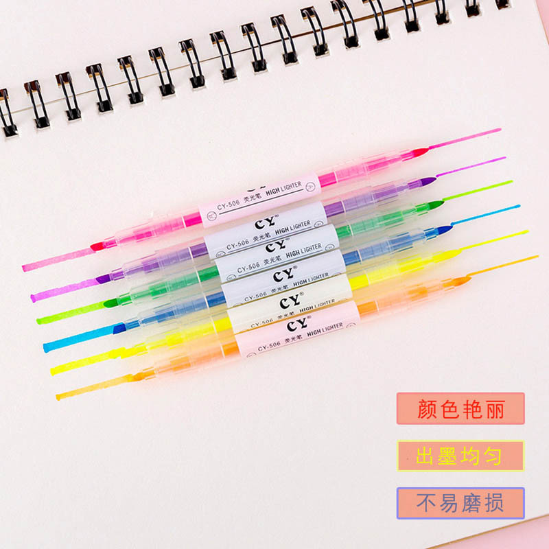6支套裝雙頭熒光筆糖果色粗細兩頭記號標記讀書學習文具學生辦公