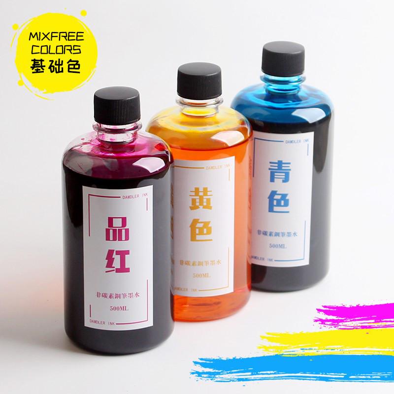 基礎色非碳素染料型彩色鋼筆墨水 混色繪畫水彩墨鋼筆水500ML大瓶