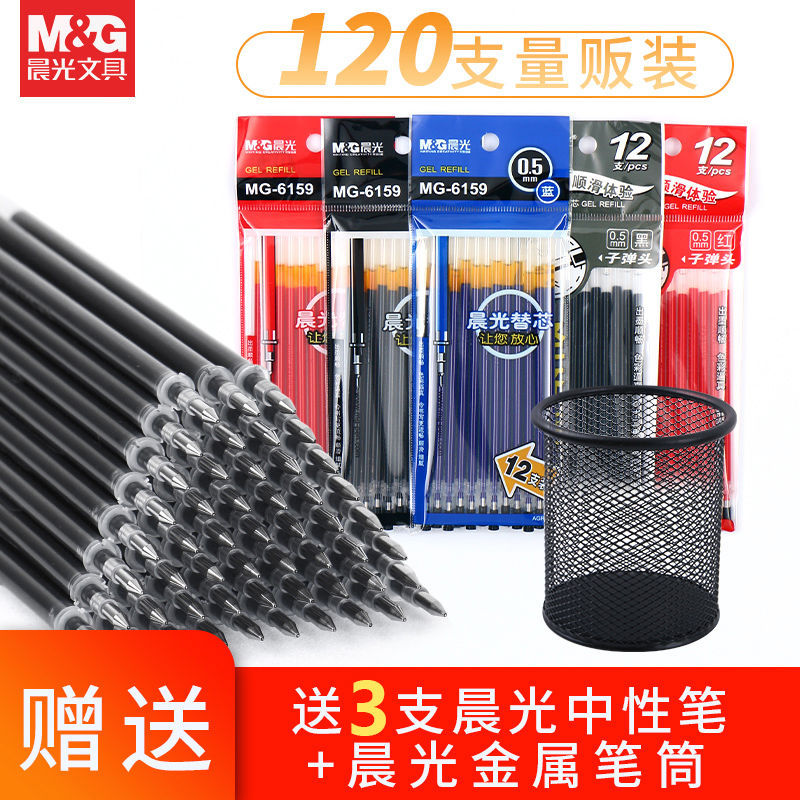 晨光筆芯120支裝中性筆芯0.5全針管考試專用子彈頭水筆黑色筆學生