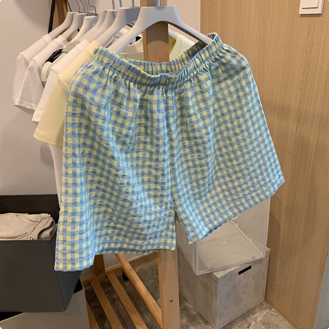 遛彎神褲格子睡褲女夏薄款居家懶人褲直筒休閑闊腿褲外穿居家短褲