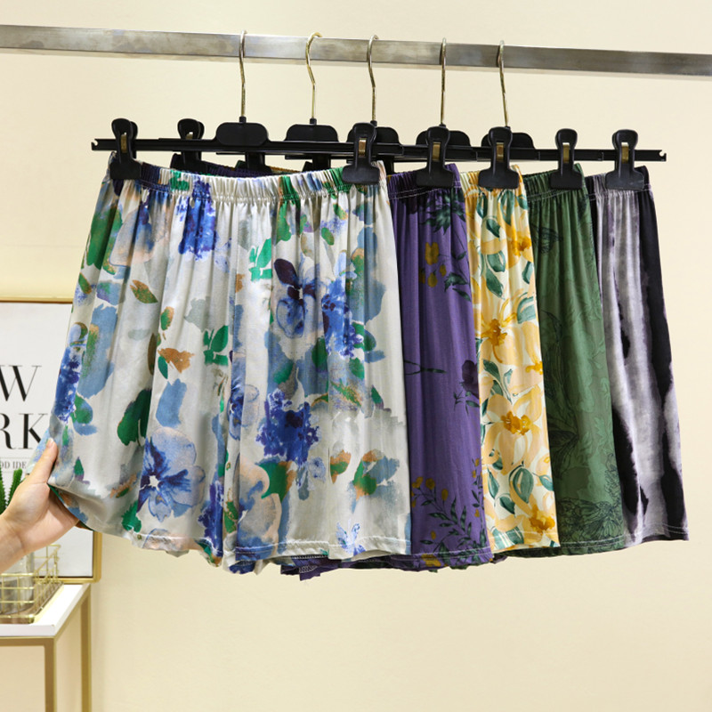 可外穿棉綢短褲女夏闊腿褲寬松休閑褲媽媽裝睡褲薄款人造棉家居褲
