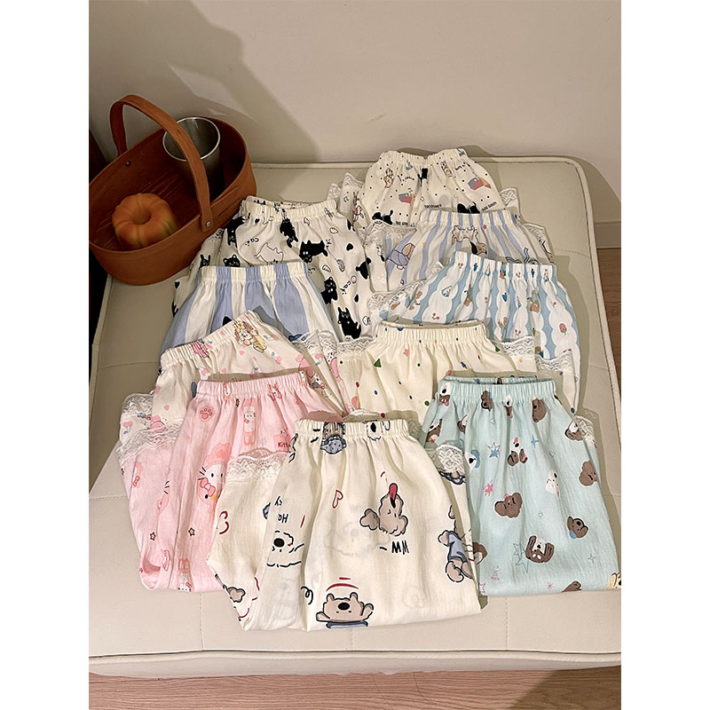 云朵棉蕾絲拼接印花可愛甜美家居褲寬松睡褲短褲女夏季薄款遛彎褲