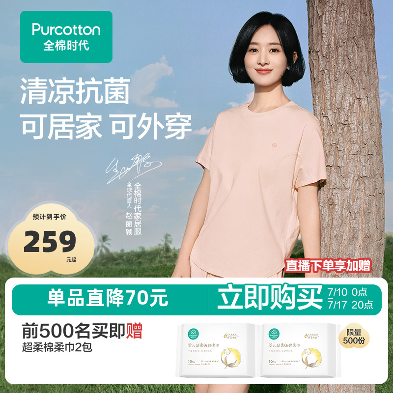 【趙麗穎同款】全棉時代睡衣女可外出家居服外出一公里套裝25春夏