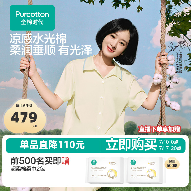 【趙麗穎同款】全棉時代女士睡衣水光棉家居服套裝垂順不易皺25春