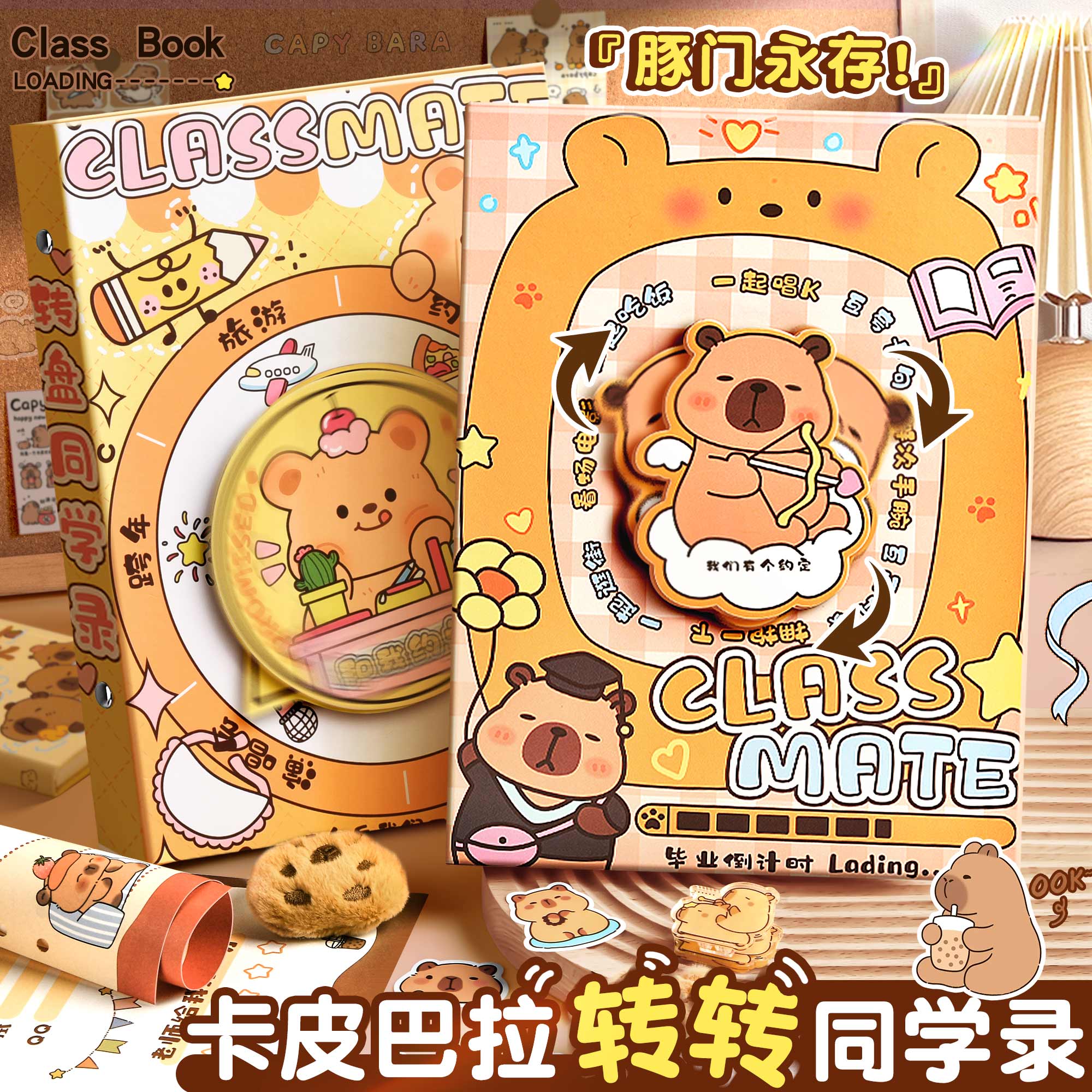卡皮巴拉轉盤同學錄小學生六年級ins風機關小眾不撞款2025新款高顏值活頁本卡通畢業紀念冊通訊錄可定制姓名