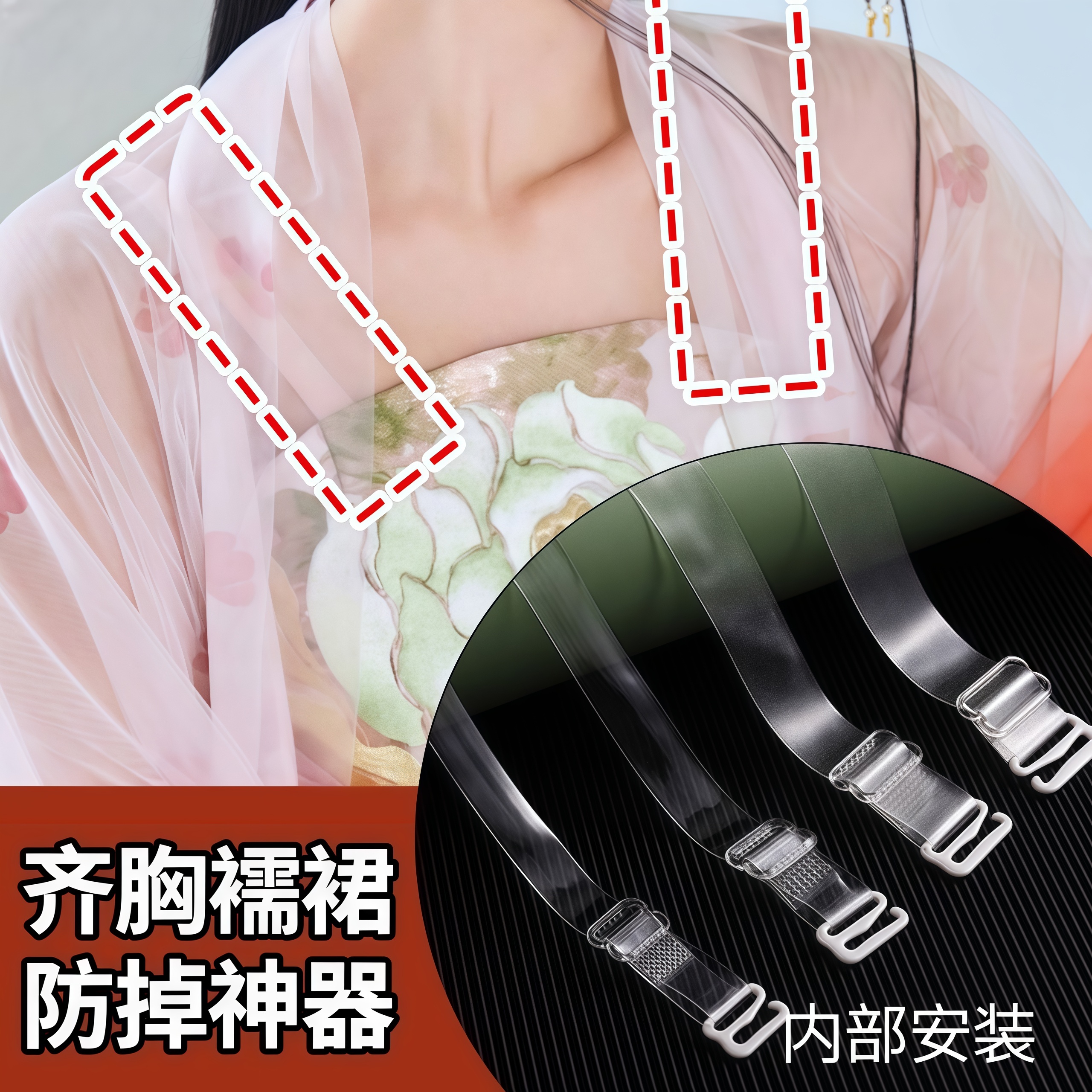 漢服齊胸防掉肩帶吊帶抹胸裙襦裙防掉神器防滑扣馬面裙齊腰裙固定