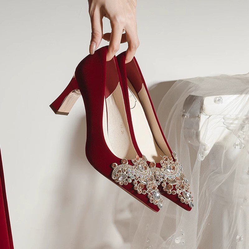推薦紅色結婚鞋女2025年春季新款中式配秀禾敬酒服的新娘高跟鞋不