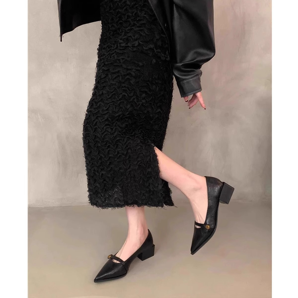 推薦2025新款女鞋子復古淺口高跟鞋一字扣粗跟單鞋尖頭瑪麗珍鞋小