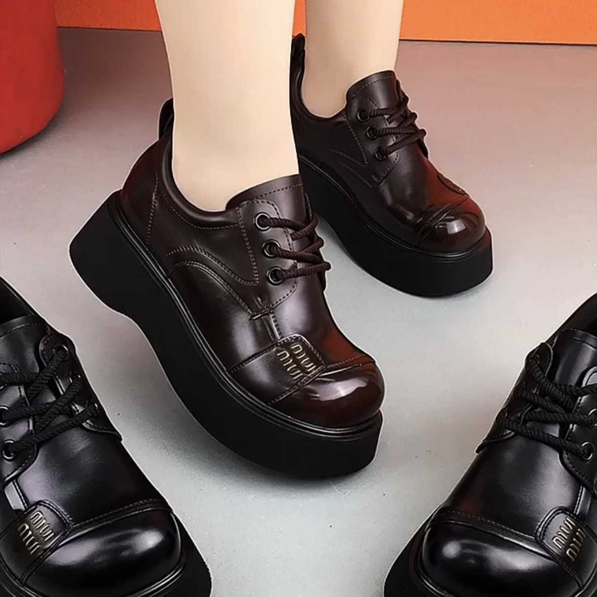 推薦時尚爆款厚底小皮鞋女2025新款春季顯瘦軟底輕便增高松糕底樂