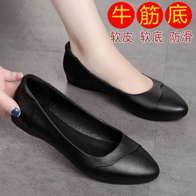 真軟媽媽鞋春秋款單鞋軟底軟面平底單鞋中老年皮鞋大碼女鞋