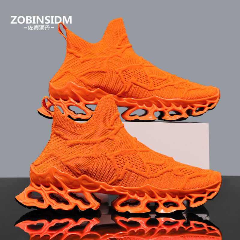 新款高幫襪子鞋透氣彈力針織鞋春秋款飛織鞋男韓版透氣休閑鞋男士
