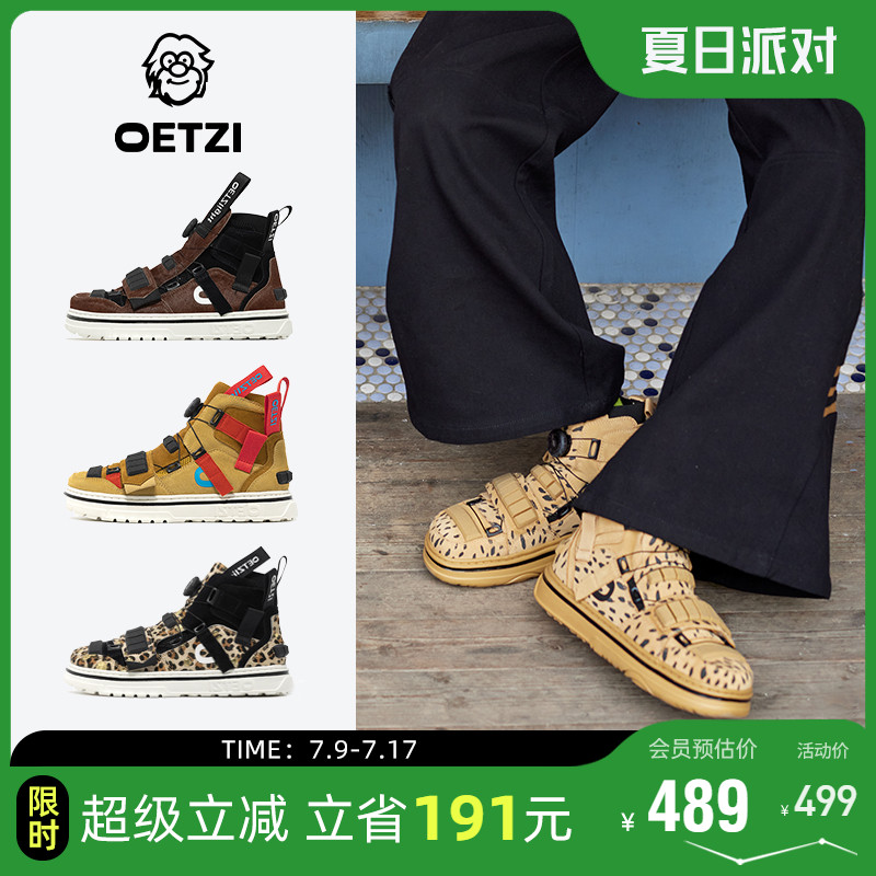 OETZI冰人奧茲黑色翻毛皮丑萌鞋男旋轉扣厚底高幫女鞋