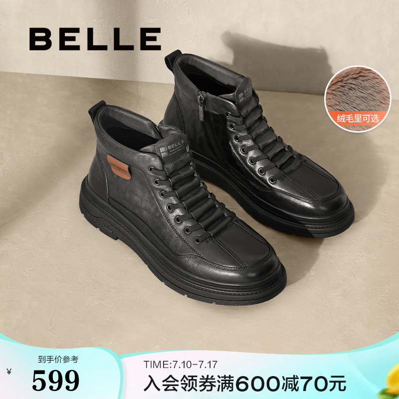 百麗男鞋高幫板鞋冬新商場同款加絨棉鞋馬丁靴短靴8PJ01DD4