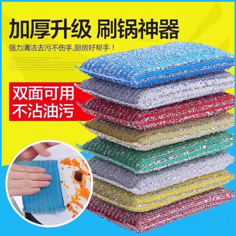 鋼絲洗碗布廚房專用銀絲棉紗洗碗巾雙層加厚不易沾油抹布刷碗神器