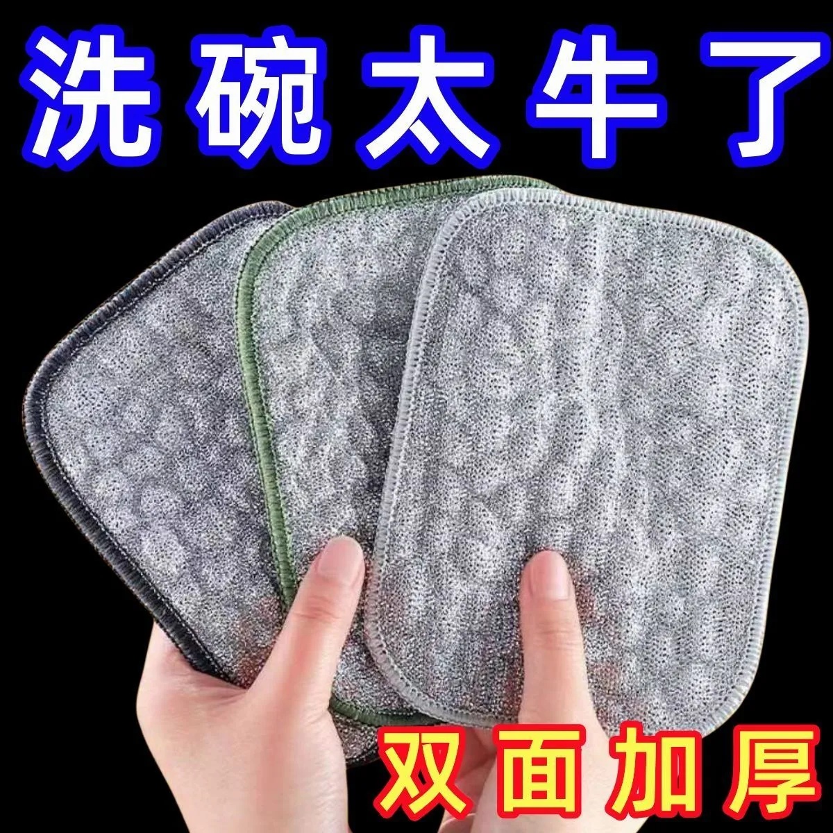洗碗布雙層加厚不沾油洗碗巾百潔布吸水抹布銀絲棉紗洗碗刷鍋神器