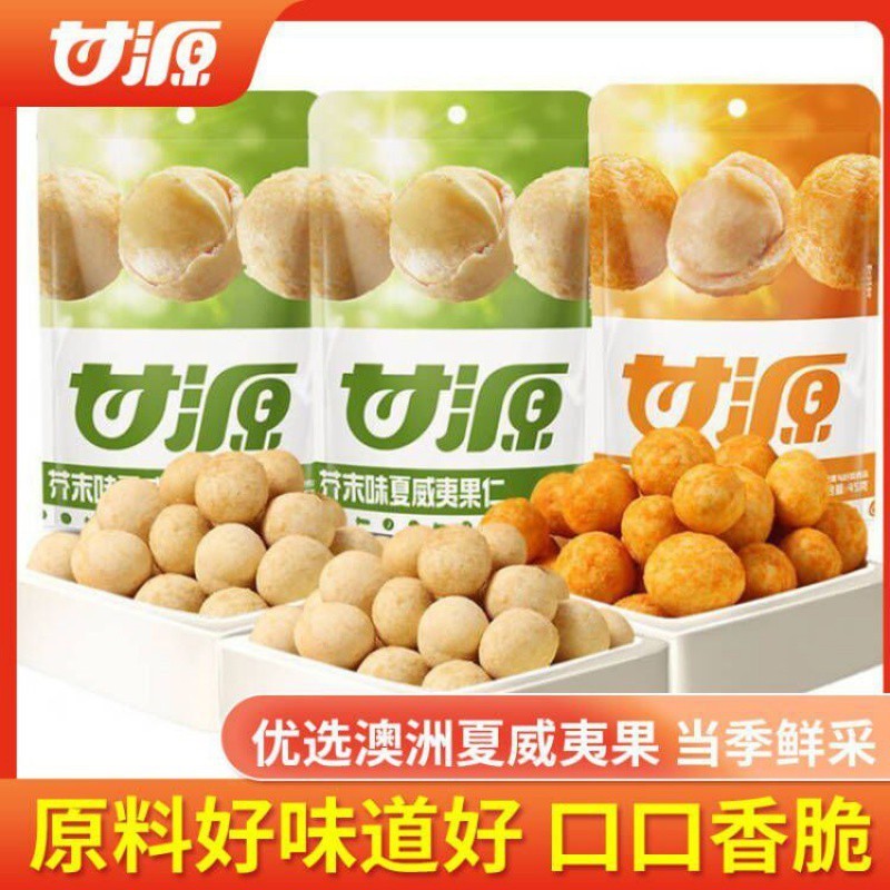 新貨甘源咸蛋黃味/芥末味夏威夷果仁45g*3袋休閑零食無殼堅果露營