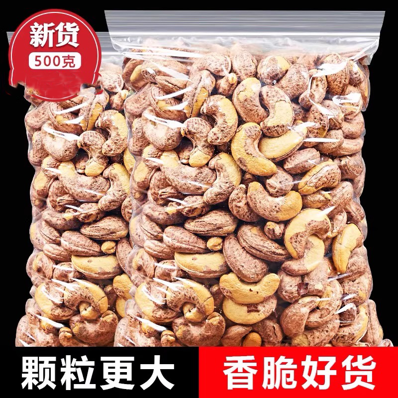 新貨酥脆帶皮腰大果500g原味鹽焗顆粒紫衣腰堅果干果孕婦零食袋裝