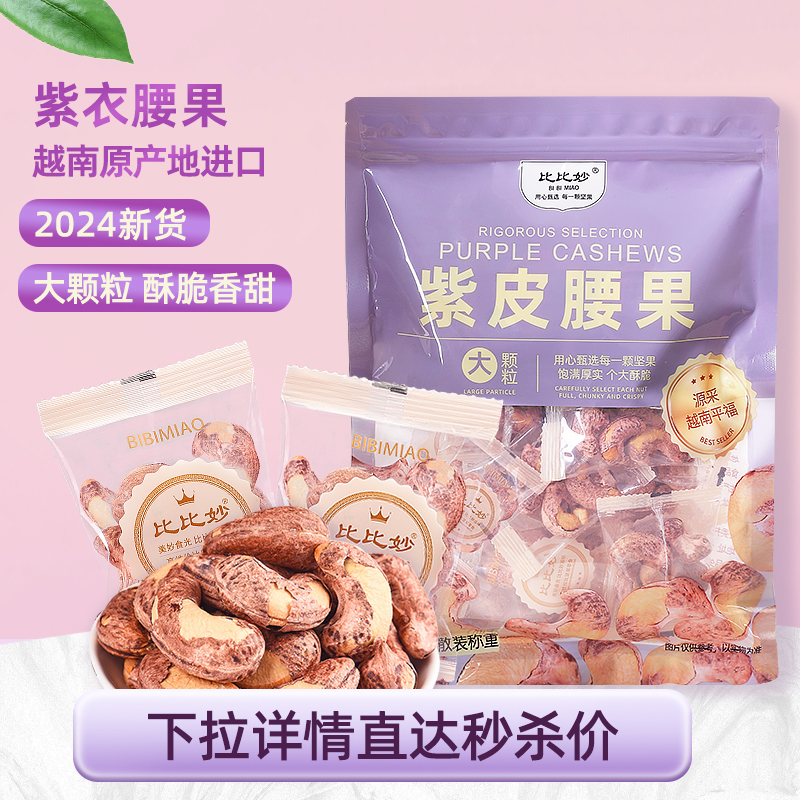 腰果仁2024年新貨紫衣越南紫皮堅果干果原味鹽焗特產零食孕婦休閑