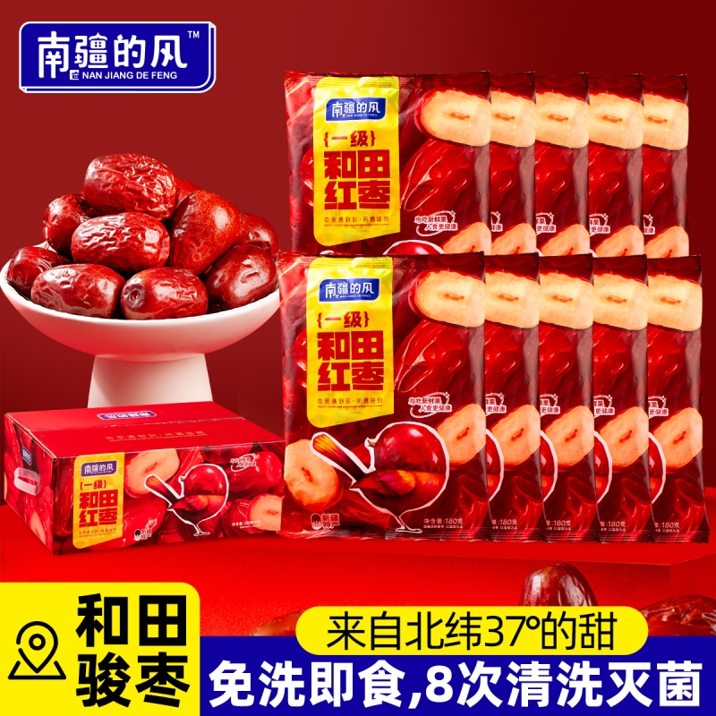 西域美農一級和田紅棗煲湯煮粥即食免洗大棗1.8KG彩箱獨立小包裝