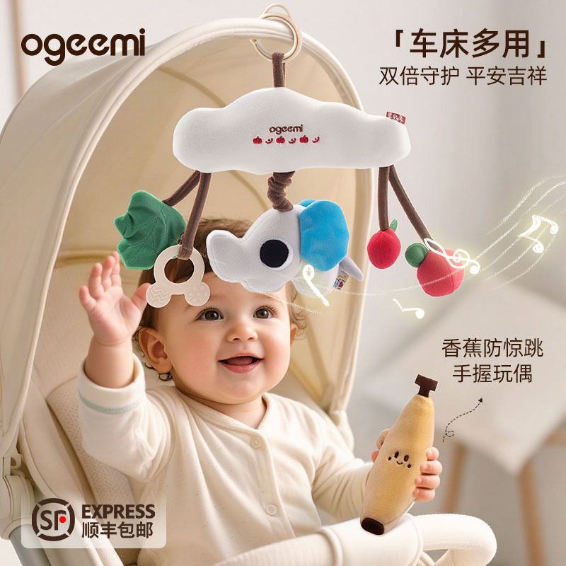 Babyfans推車掛件嬰兒0-1歲音樂玩具安撫毛絨玩具床掛八音盒玩偶