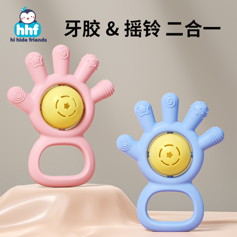 寶寶手掌搖鈴嬰幼兒訓練抓握益智安撫玩具0-3-6歲以上可啃咬牙膠