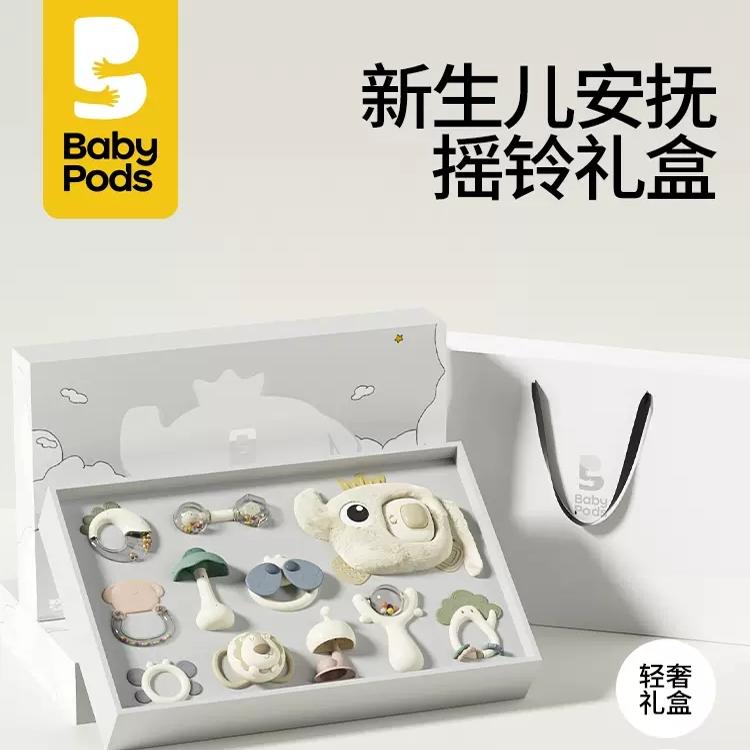 babypods可啃咬新生寶寶搖鈴安撫玩具嬰兒抓握訓練早教益智周禮物