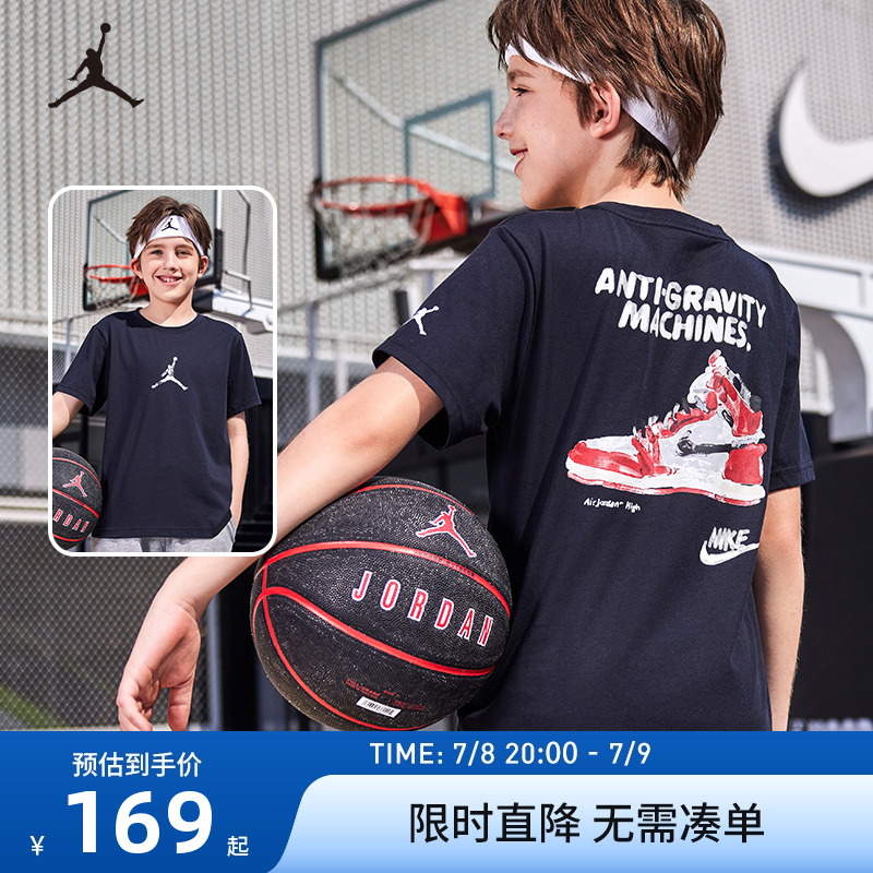 JORDAN兒童裝2025夏季男童T恤中大童透氣短袖耐克AJ夏裝JD2332083