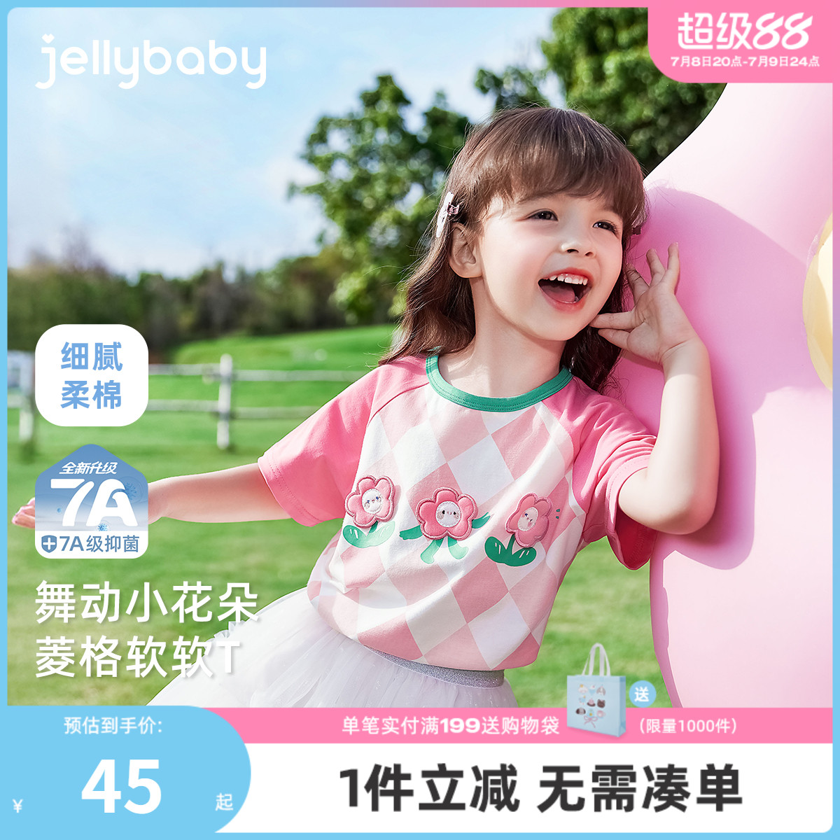 [7A抗菌]女童圓領T恤1女寶寶夏裝短袖上衣2025夏季小女孩花朵上衣
