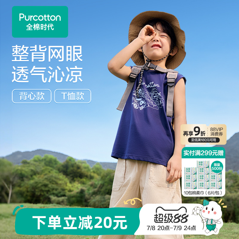 全棉時代兒童背心男童25夏新款男孩涼感針織網眼透氣印花打底背心
