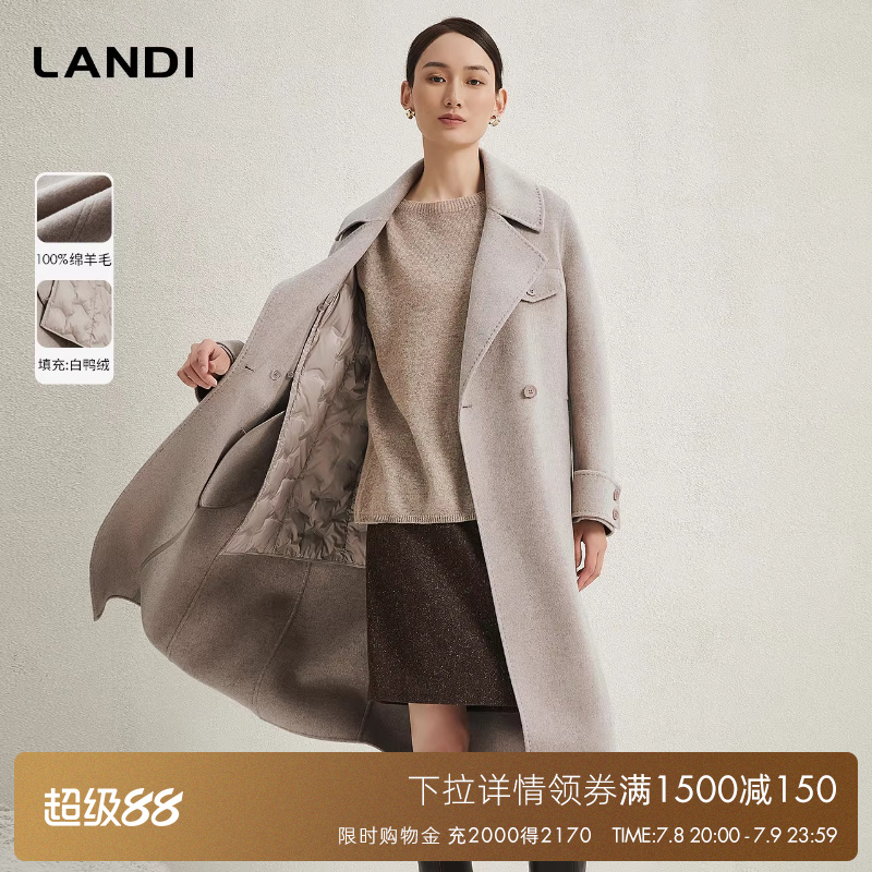 [可拆卸羽絨內膽]LANDI藍地長款羊毛大衣女雙面毛呢外套冬新品