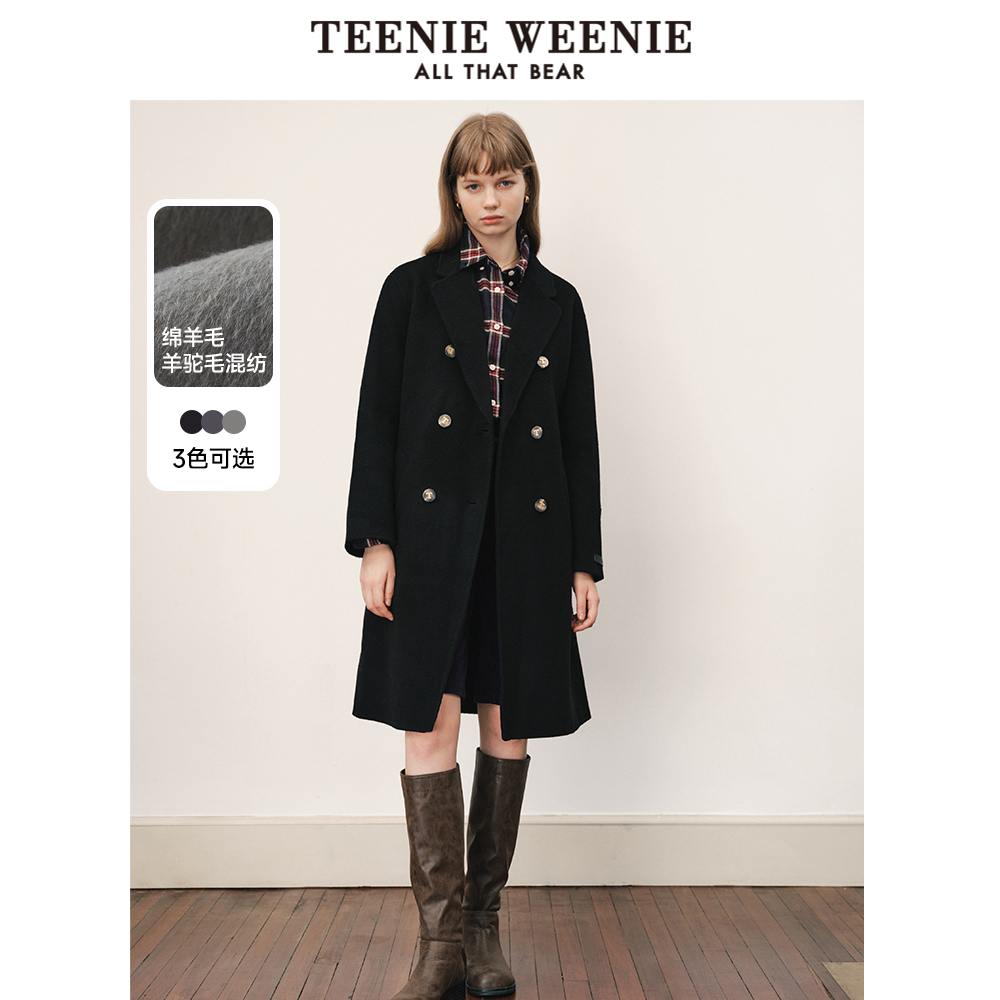 【反季清倉】TeenieWeenie小熊奧萊綿羊毛雙排扣中長款雙面呢子大