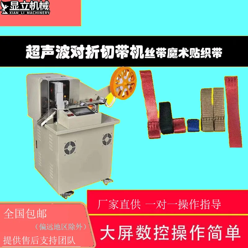 全自動超聲波對折切帶機 織帶絲帶緞帶羅紋帶魔術貼無紡布切帶機