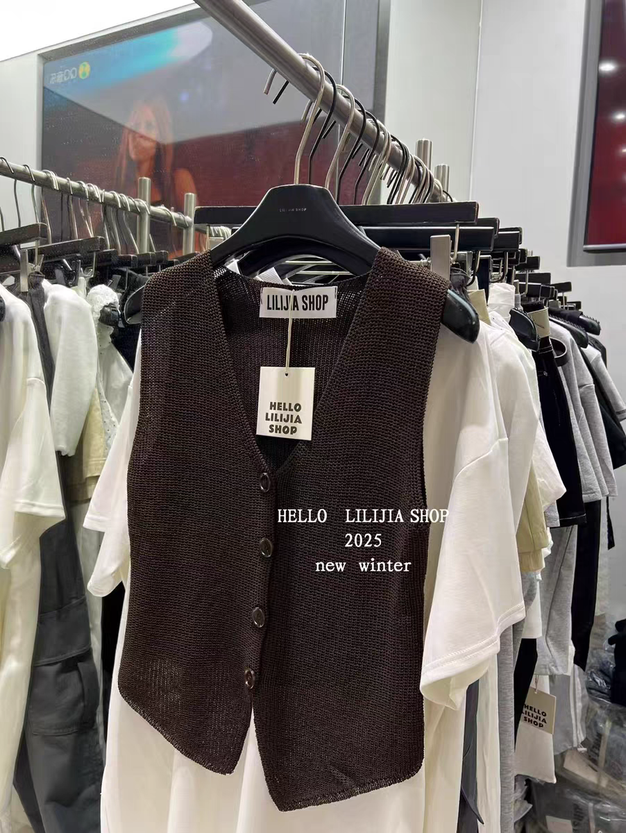 MH家 2025夏季韓版時尚百搭顯瘦V領無袖冰絲背心式排扣馬甲上衣
