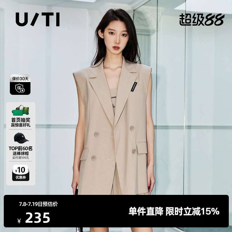 U/TI簡約卡其工字上衣馬夾通勤無袖西裝外套女潮尤緹時尚春季新款