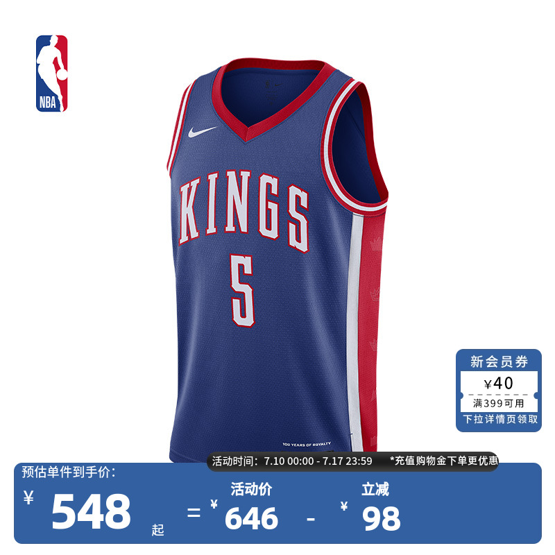 Nike官方NBA City Edition國王隊達龍·??怂筪rifit成人速干球衣