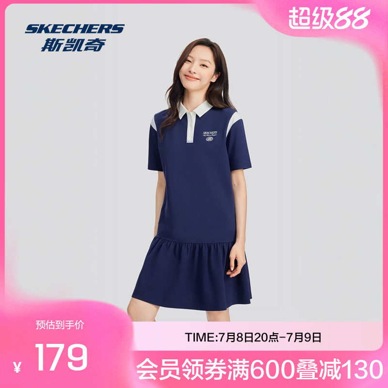 Skechers斯凱奇2024新款女子Polo領短袖休閑運動連衣裙涼感舒適