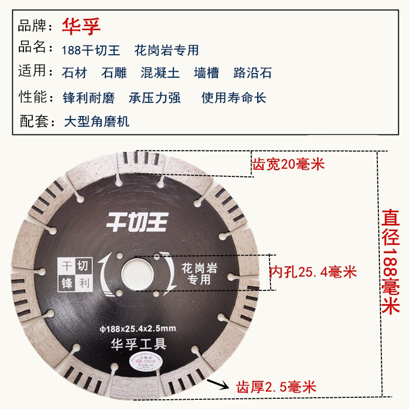 華孚180mm多功能干切王瓷磚鋼筋金剛石鋸片混凝土墻槽開槽水工具