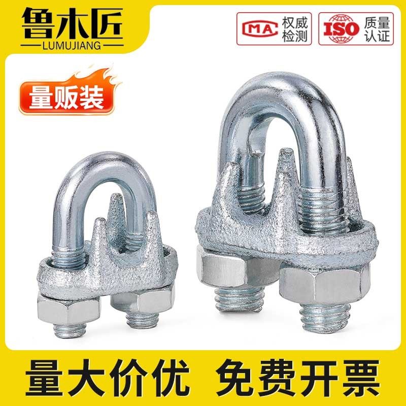 國標鍍鋅鋼絲繩卡頭卡扣夾頭卡頭鎖扣U形卡頭固定接頭鋼絲繩夾頭