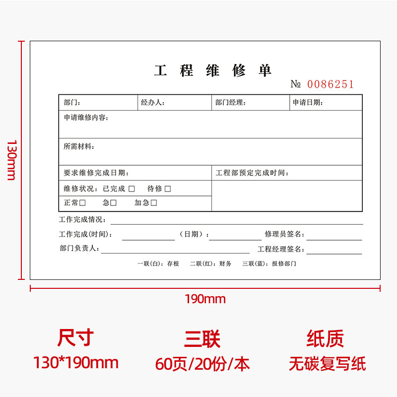 易復得三聯四聯工程維修單物業報修單受理單設備保修售后單據定做