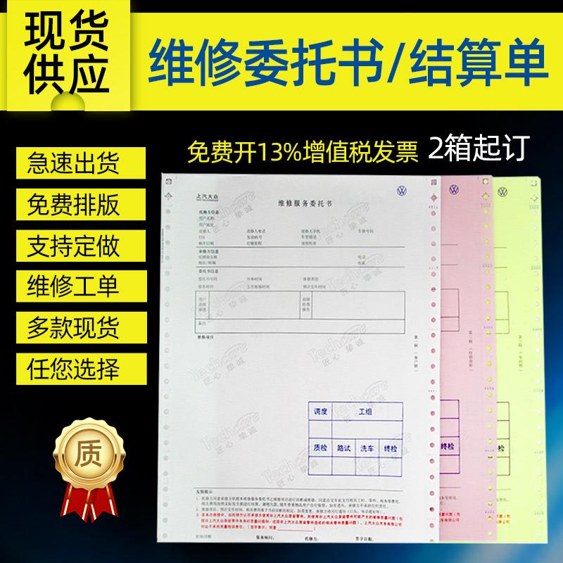 上汽大眾委托書結算單三聯兩聯售后維修服務打孔打印紙汽車4S店