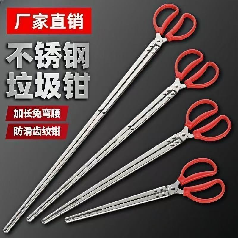 撿垃圾夾子火鉗衛生夾不銹鋼黃鱔夾環取物拾物器碳夾彎腰趕海加長