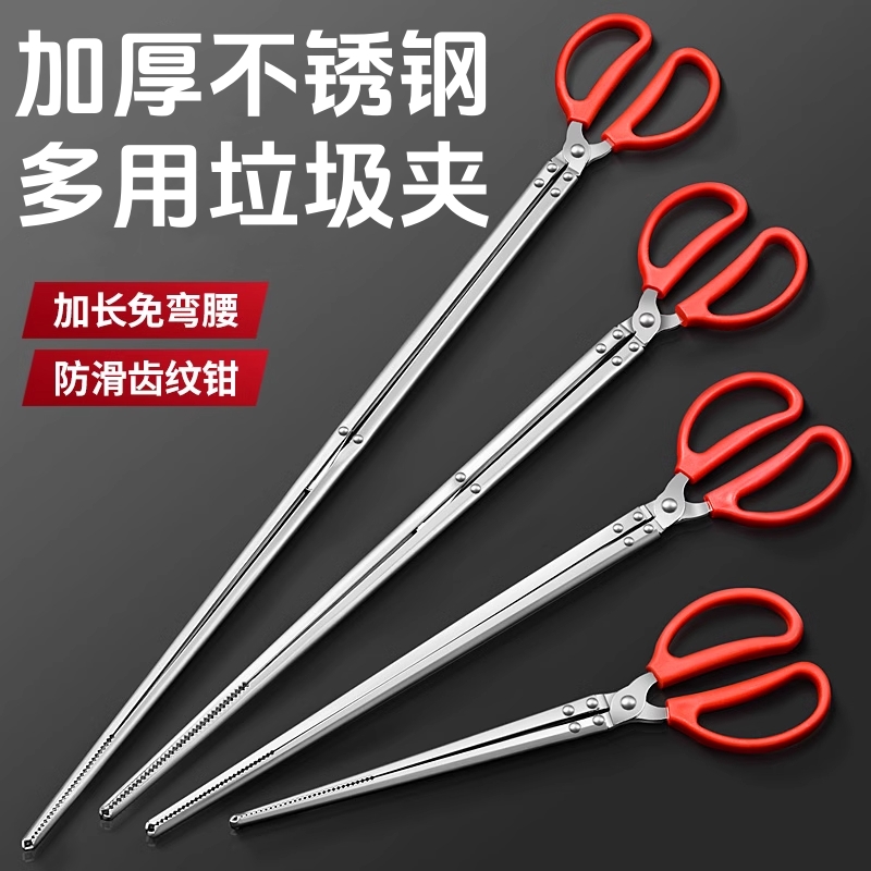 撿垃圾夾子火鉗衛生夾不銹鋼黃鱔夾環取物拾物器碳夾彎腰趕海加長