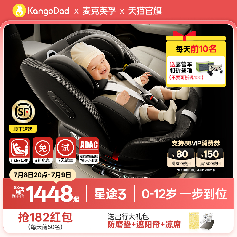 袋鼠爸爸星途3兒童安全座椅寶寶車載旋轉安全椅嬰兒0到12歲ADAC
