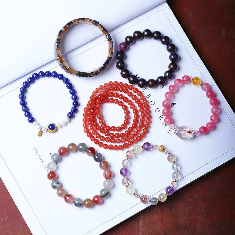一物一圖 孤品清倉撿漏 天然水晶手鏈海藍寶幽靈花珀南紅瑪瑙青金