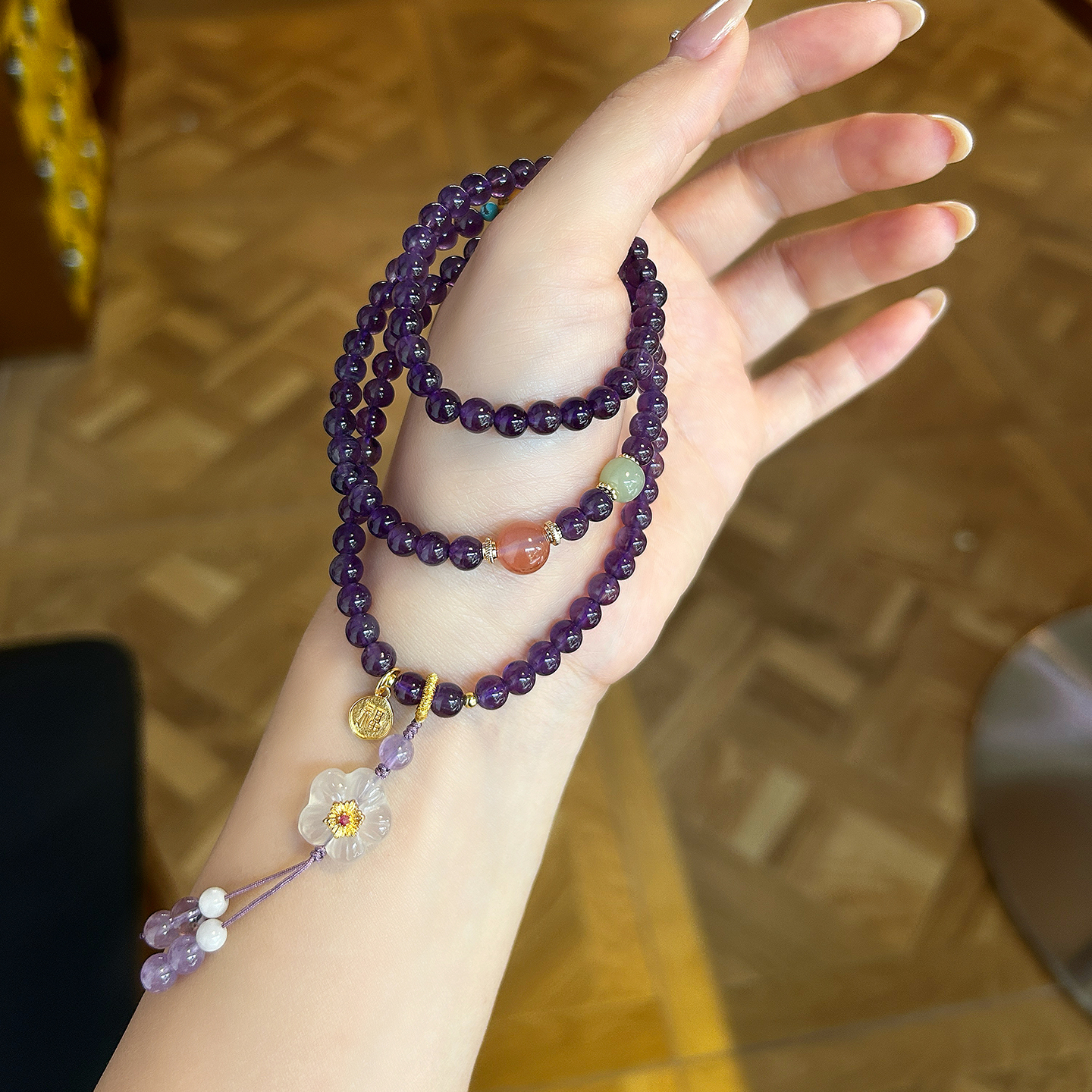 天然紫水晶多圈手鏈女款設計款招財上岸精致手串疊戴飾品閨蜜禮物