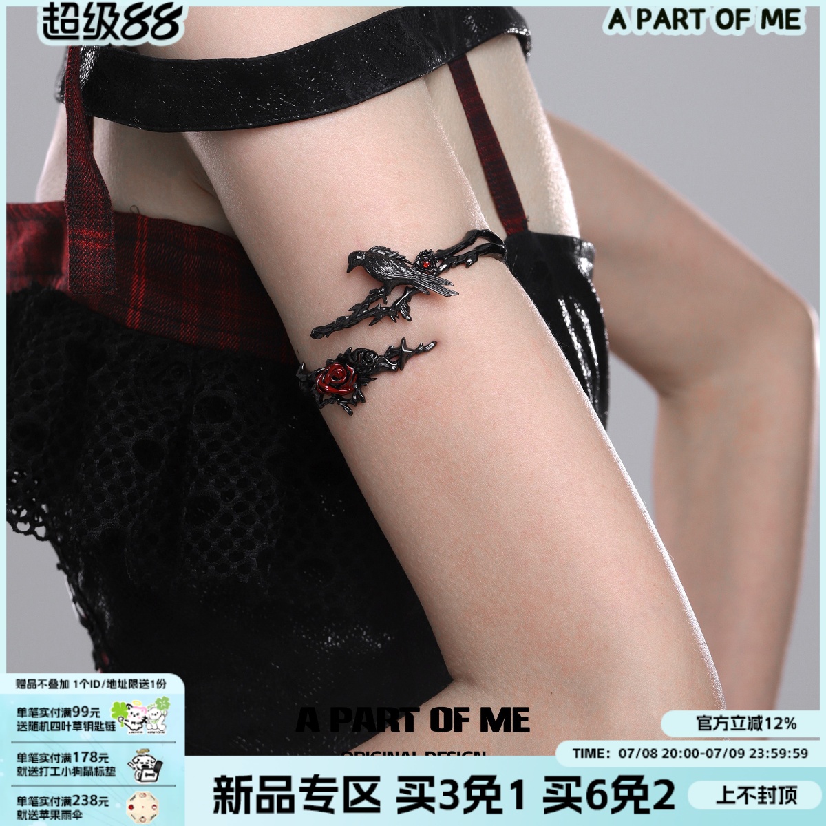 渡鴉系列原創臂環手鐲小眾設計烏鴉個性高級暗黑Y2K手鏈玫瑰手環
