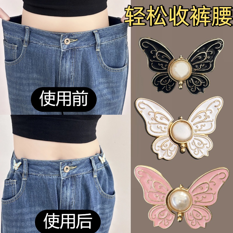 牛仔褲腰圍改小固定裝飾神器珍珠收緊紐扣免釘蝴蝶收腰扣子免打孔